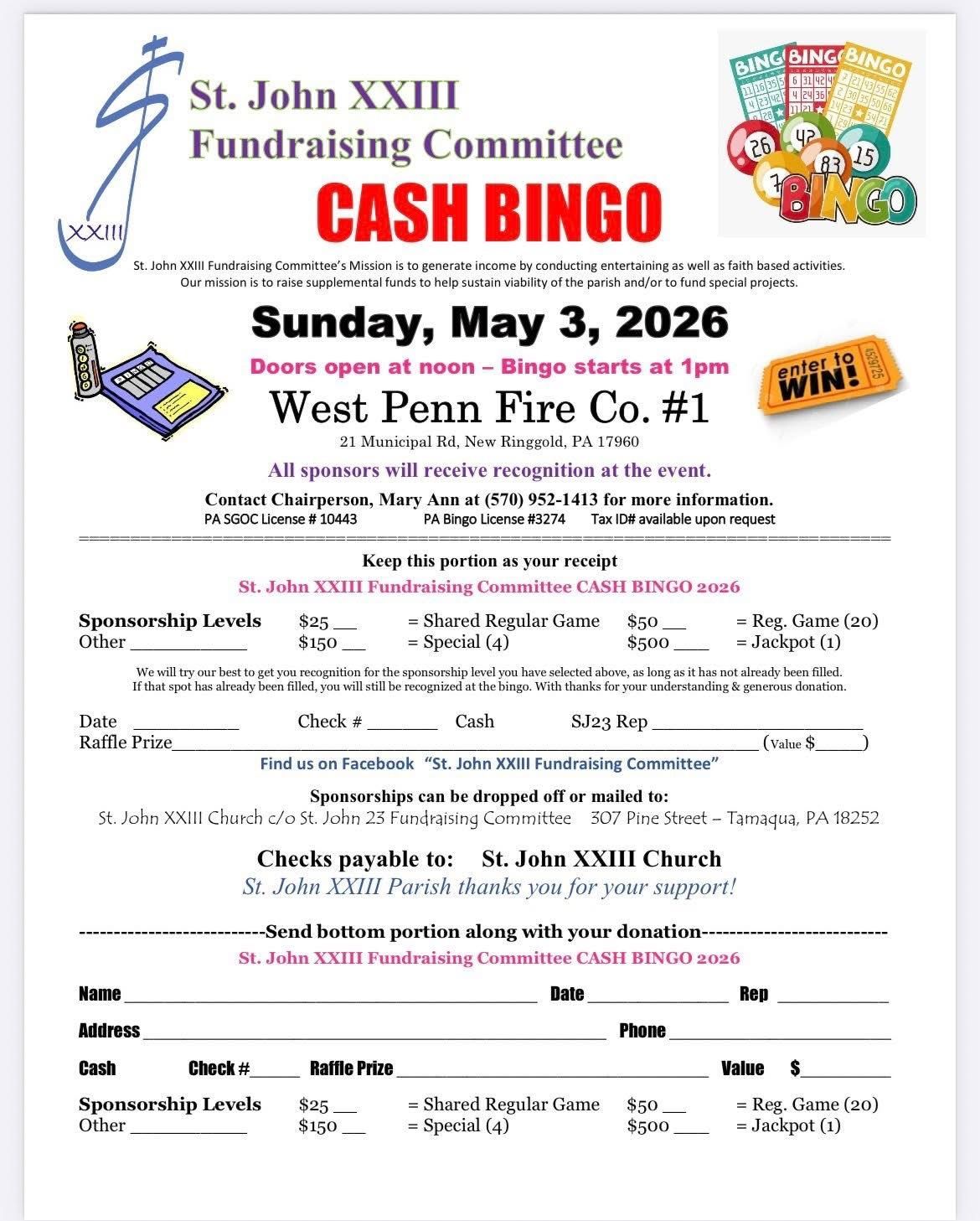 “St. John XXIII Fundraising Committee’s Mission is to generate income by conducting, entertaining, as well as faith based activities.