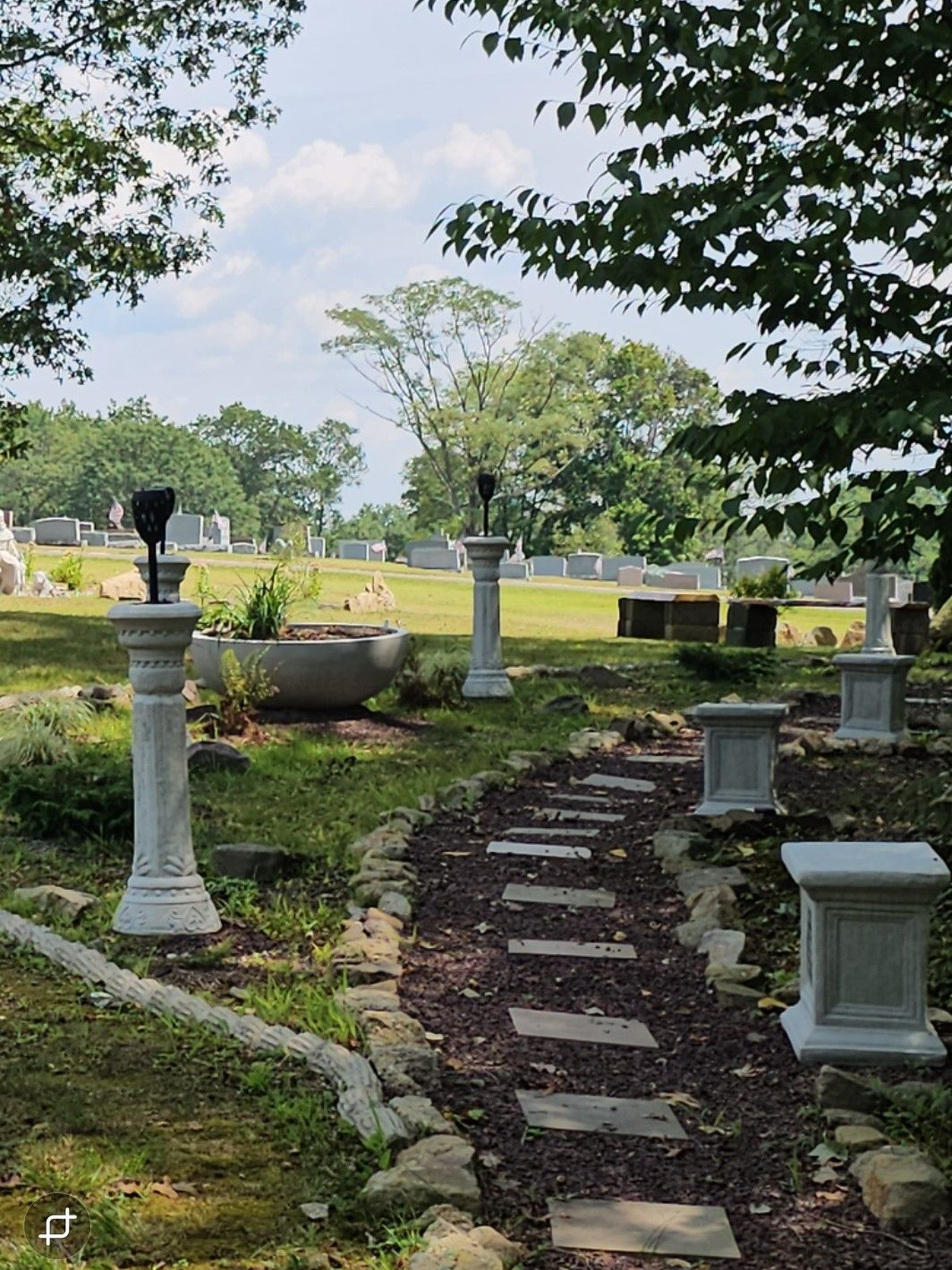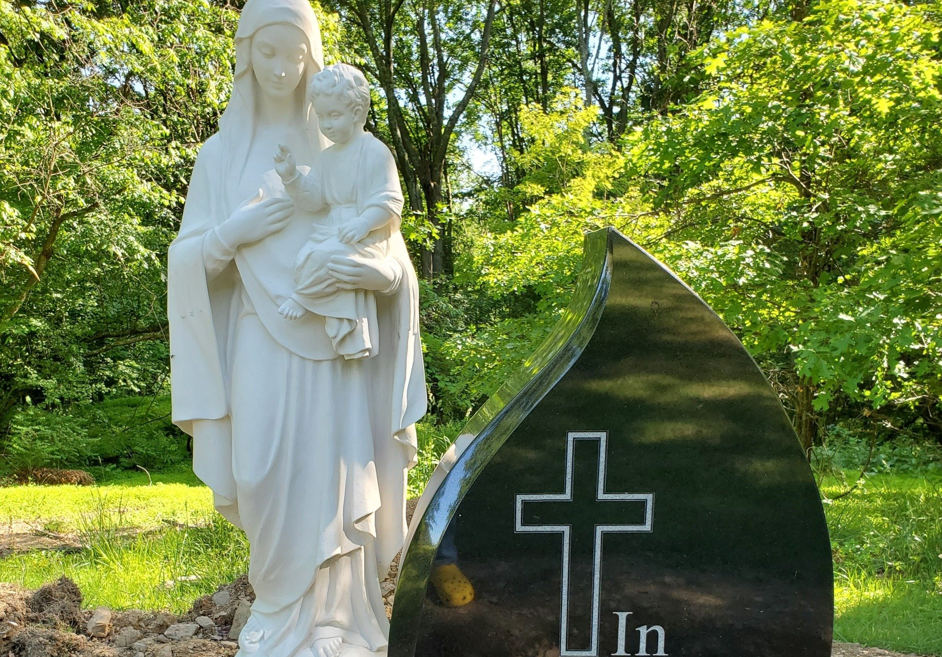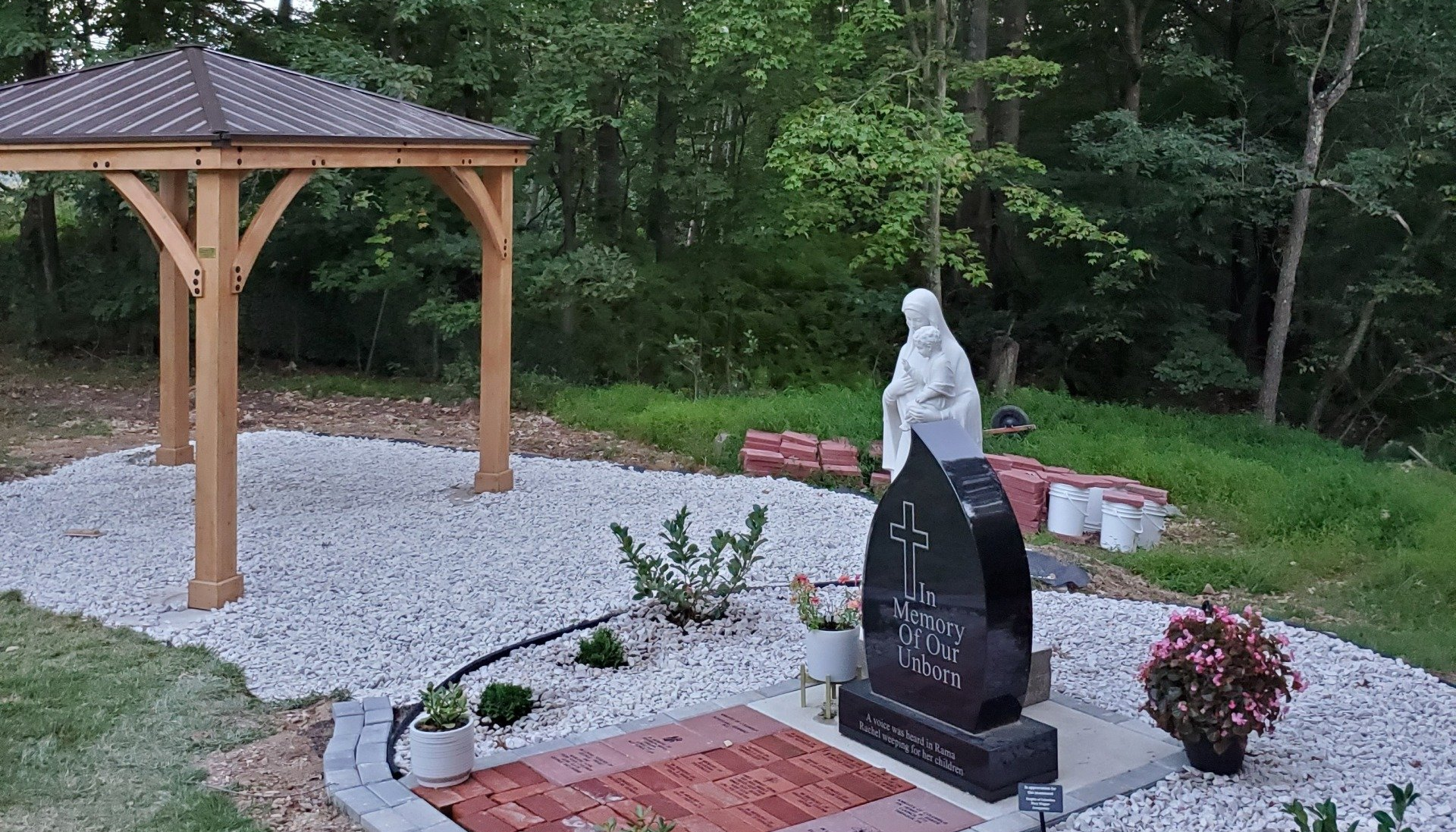 A beautiful monument for aborted children is the center of this section, surrounded by an area of evergreens that symbolize eternal life, with a backdrop of woods. This area was designed to honor lost loved ones.
