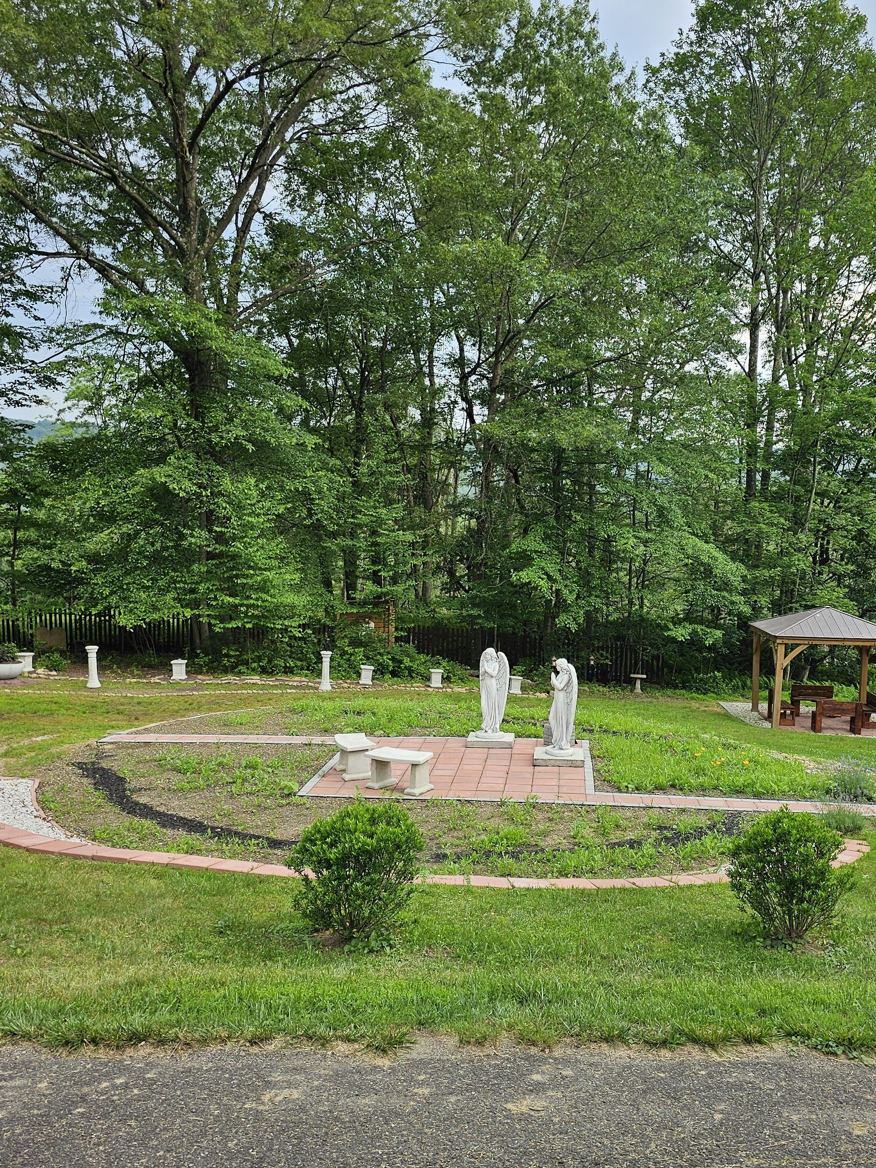 Sit in the midst of a small wildflower field, along with a couple angels and a small fountain to reflect, pray, read.