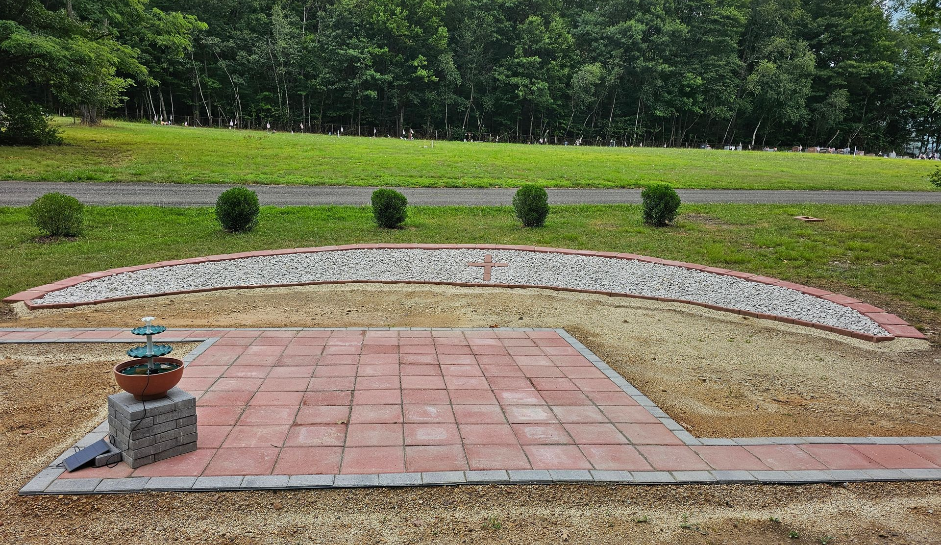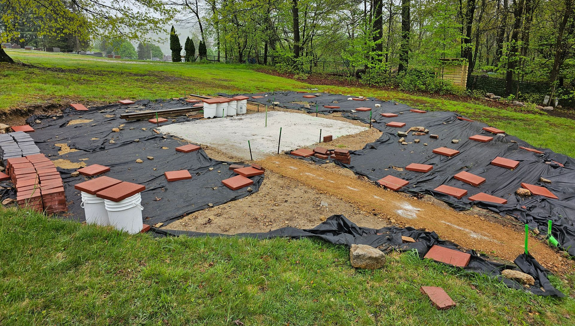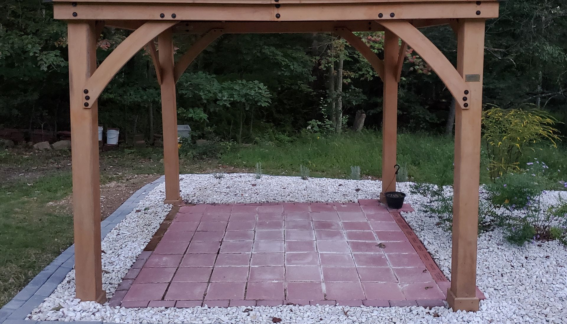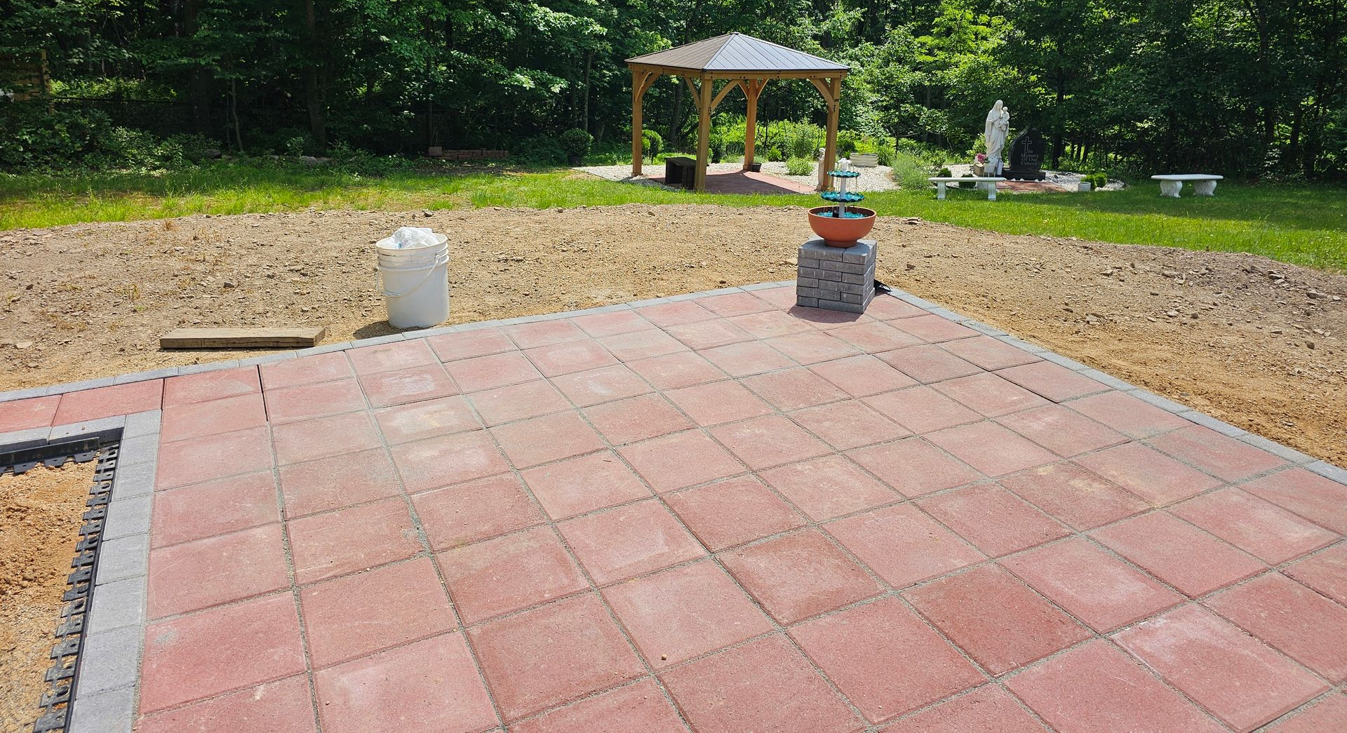 Paver bricks for the gazebo floor and the perimeter were completed