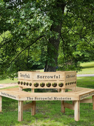 The sections of the bench will have inscriptions and images representing the mysteries and decades of the Rosary , and are available to sponsor in memory of a loved one.